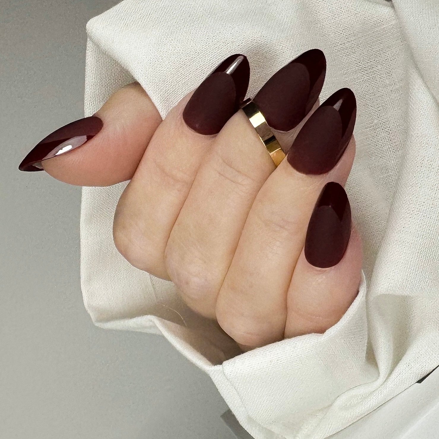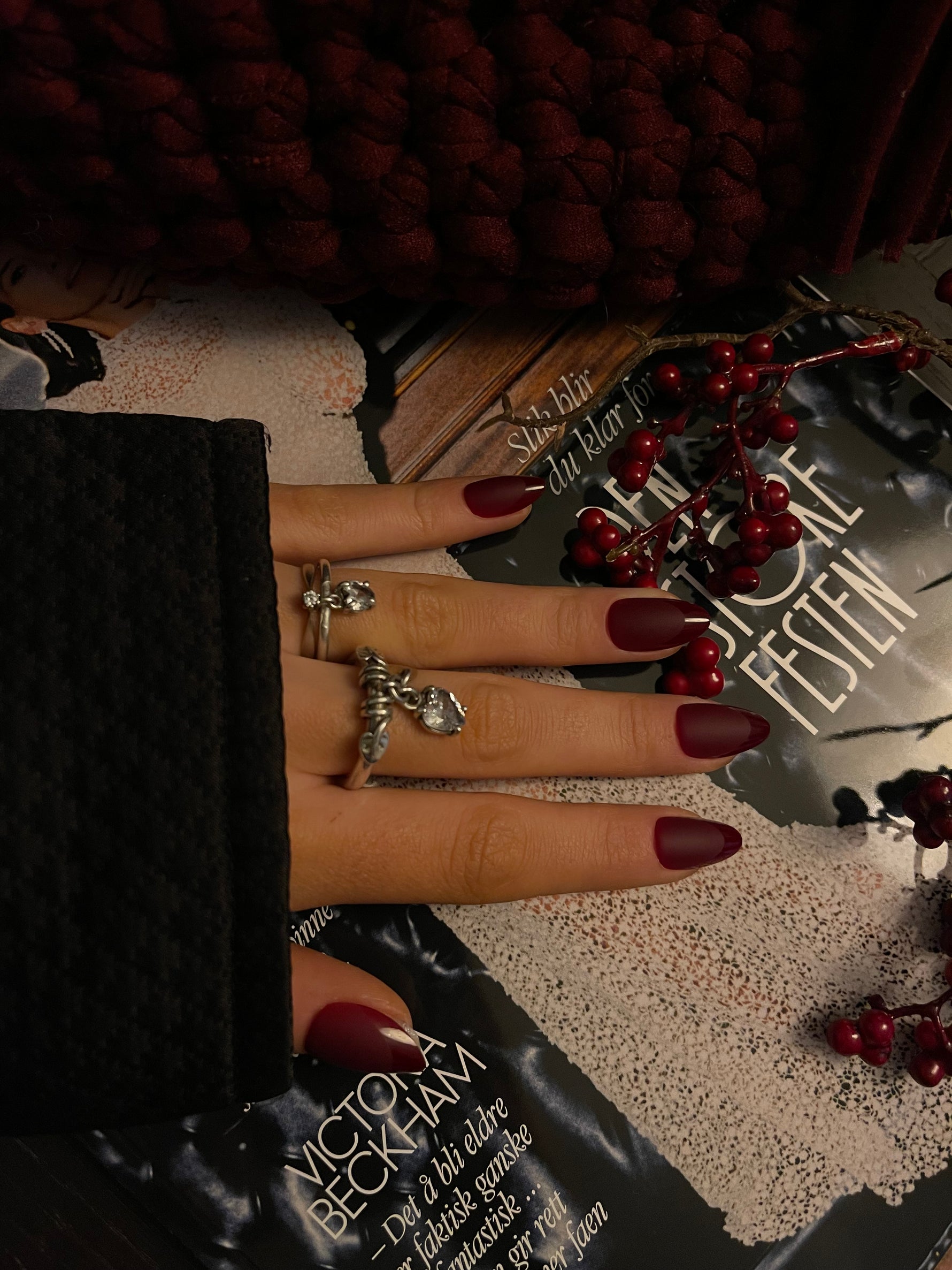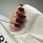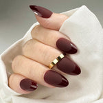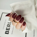 Midnight Merlot er en nydelig dyp burgunder farge. Med en kombinasjon av både glans, matthet og fransk design. Almond formen er en elegant og ganske allsidig form som forsterker det feminine og slanke uttrykket. Lengden er størrelse M.